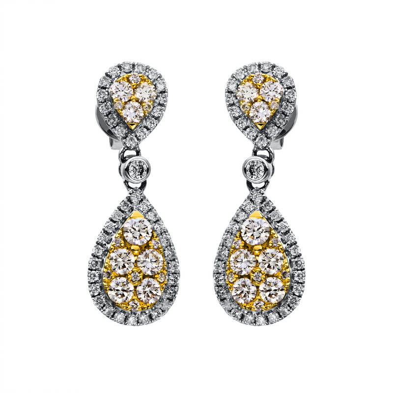 earrings 18 kt WG+YG "pear", 34 diamonds 0,84 ct, yellow-vsi/si, 80 diamonds 0,39 ct, G-vsi/si