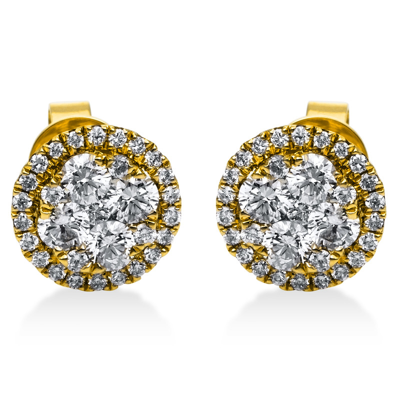 earrings 18 kt YG, 8 diamonds 0,68 ct, G-vsi/si, 54 diamonds 0,30 ct, G-vsi/si, Ø:9,0 mm