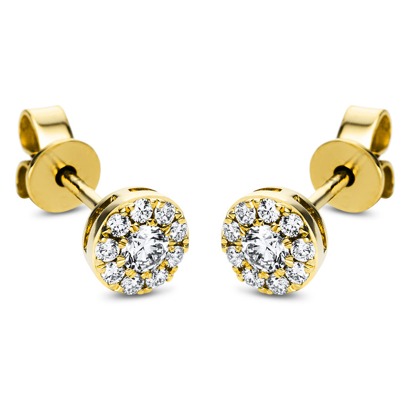 earrings 18 kt YG, 18 diamonds 0,14 ct, G-si, 2 diamonds 0,11 ct, G-si, Ø:5,3 mm