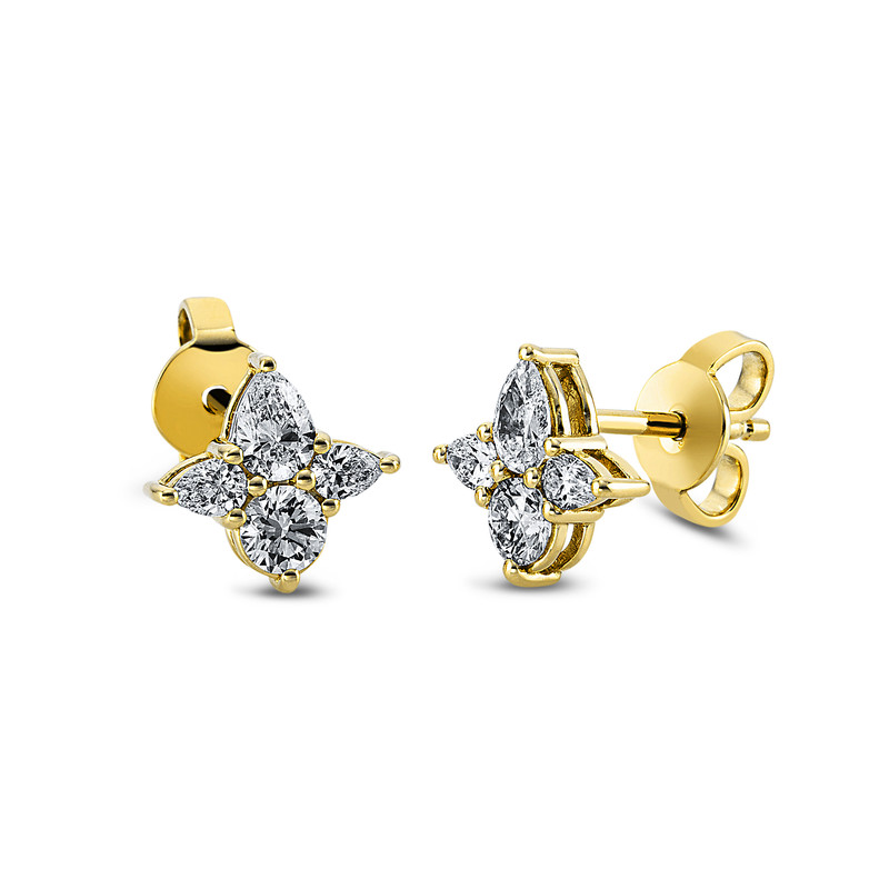 earrings 18 kt YG, 8 fanta cut 0,80 ct, G-vsi/si, h:6,7 mm, w:6,7 mm