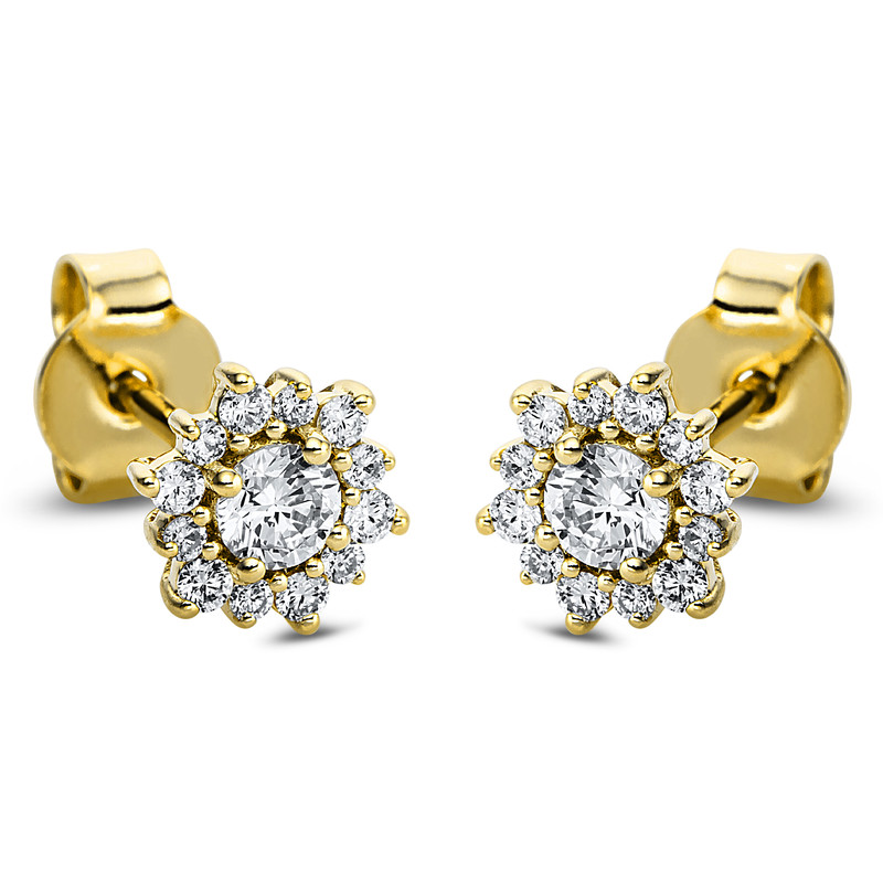 earrings 18 kt YG, 2 diamonds 0,29 ct, G-si, 24 diamonds 0,23 ct, G-si