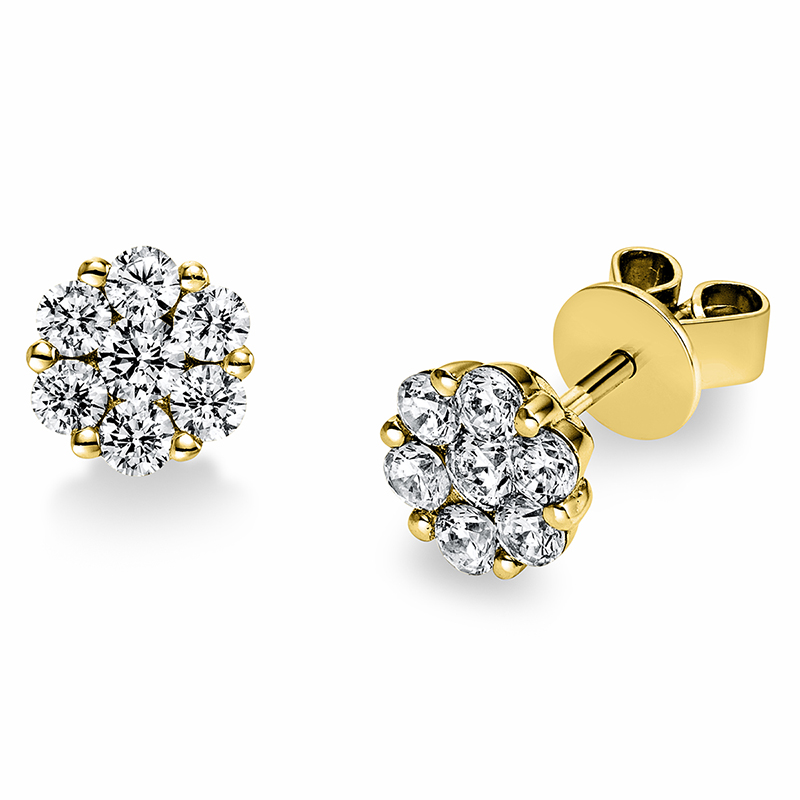 earrings 18 kt YG, 2 diamonds 0,18 ct, G-si, 12 diamonds 0,67 ct, G-si, w:7,1 mm