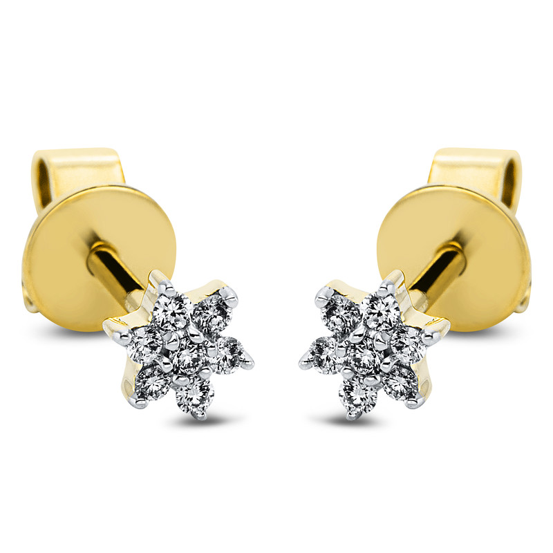 earrings 18 kt YG+WG, 14 diamonds 0,09 ct, G-si, h:4,7 mm