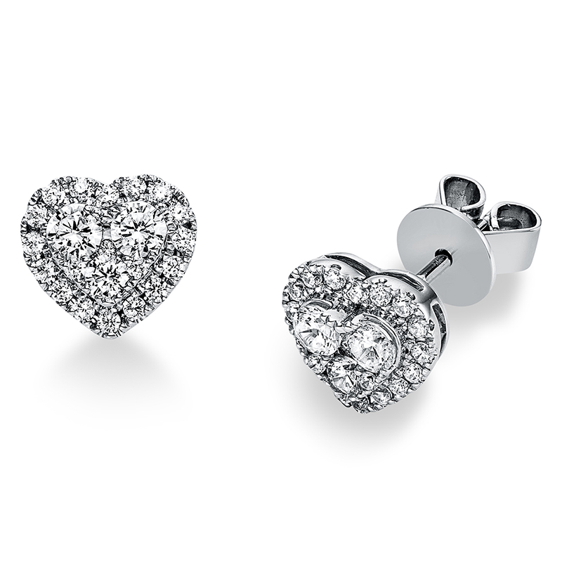 earrings 950 Pt Platinum "heart", 6 diamonds 0,37 ct, G-si, 38 diamonds 0,20 ct, G-si