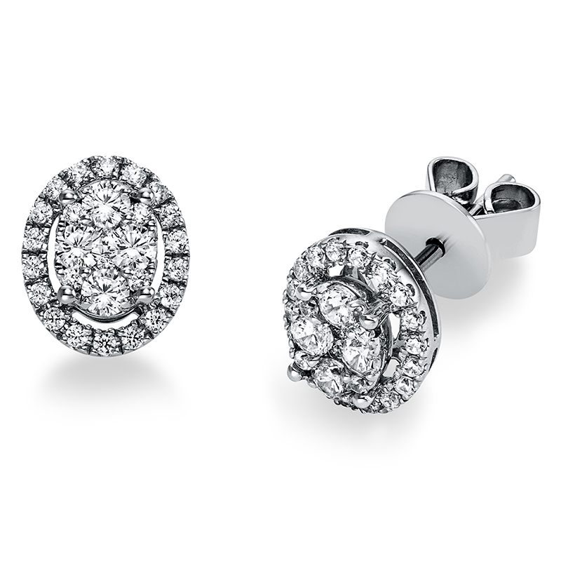earrings 950 Pt Platinum "oval", 8 diamonds 0,30 ct, G-si, 48 diamonds 0,20 ct, G-si
