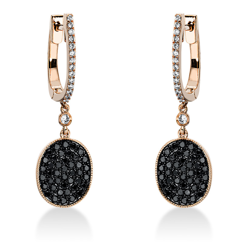 huggies 14 kt RG, setting black rhodium plated, 30 diamonds 0,19 ct, G-vsi/si, 84 diamonds 0,68 ct, black