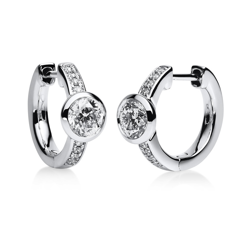 huggies 14 kt WG, 16 diamonds 0,10 ct, G-si, 2 diamonds 1,00 ct, G-si, h:19,0 mm, w:11,0 mm, th:1,7 mm