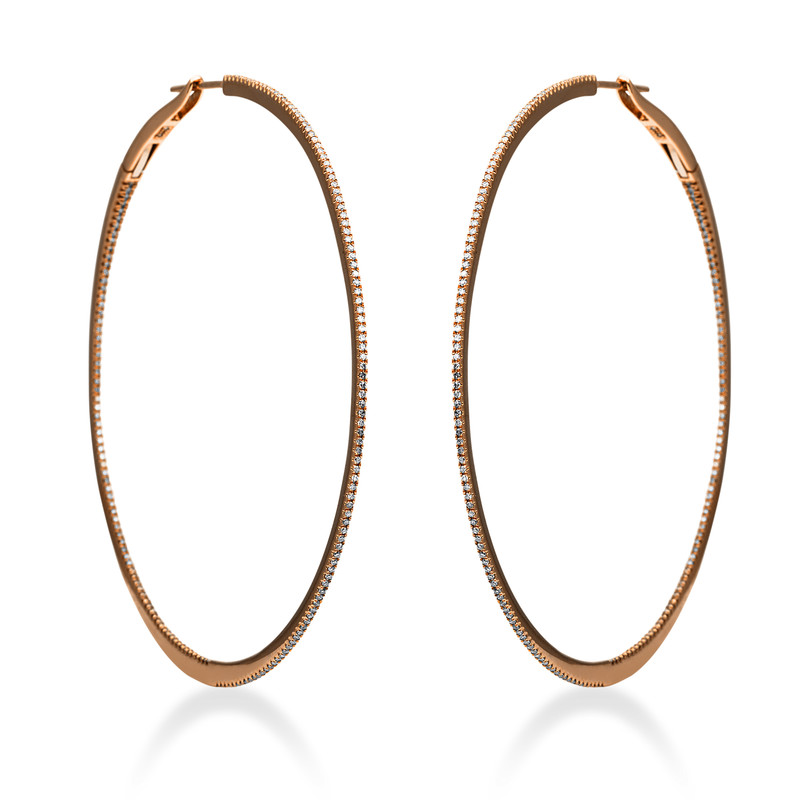 huggies 18 kt RG, 362 diamonds 0,72 ct, G-si, h:64,7 mm, w:63,0 mm, th:1,0 mm