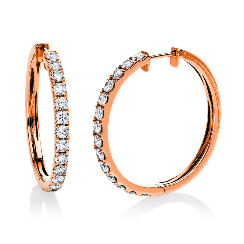huggies 18 kt RG, 28 diamonds 2,28 ct, G-si, h:29,5 mm, w:29,5 mm, th:2,9 mm