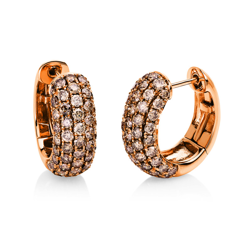 huggies 18 kt RG, 98 diamonds 1,90 ct, brown, h:16,2 mm, w:15,6 mm, th:6,4 mm