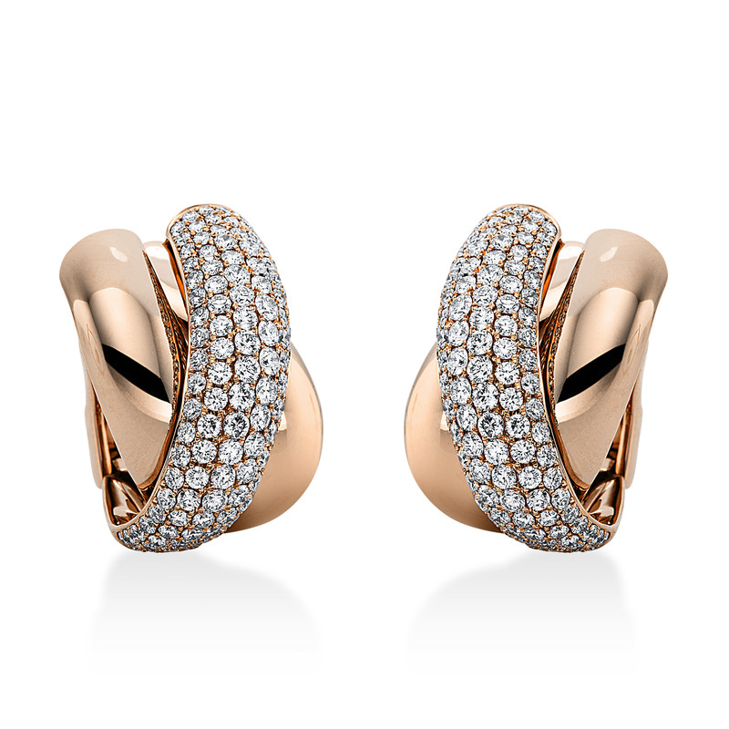 huggies 18 kt RG, 242 diamonds 3,56 ct, G-vsi, h:23,2 mm, w:16,2 mm