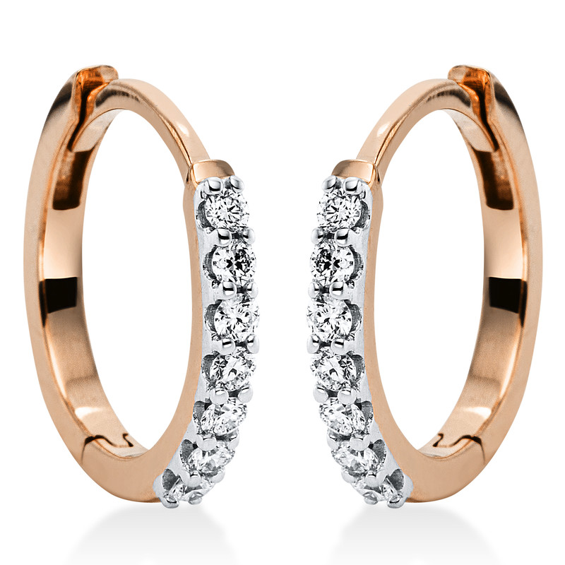 huggies 18 kt RG+WG, 14 diamonds 0,15 ct, G-si, h:11,9 mm, w:12,7 mm, th:1,5 mm