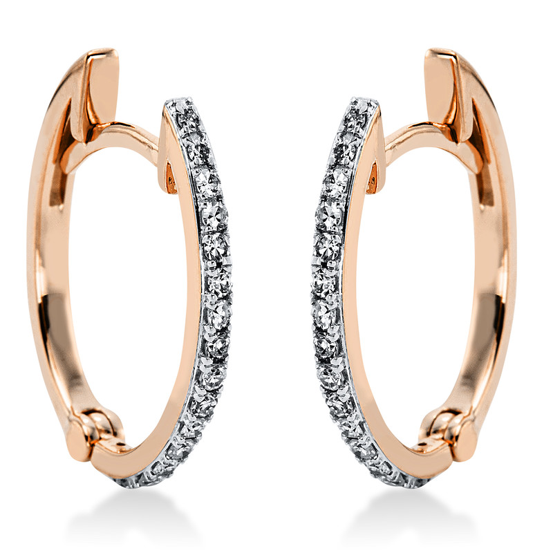 huggies 18 kt RG+WG, 32 diamonds 0,19 ct, G-si, h:16,6 mm, w:13,2 mm, th:1,5 mm