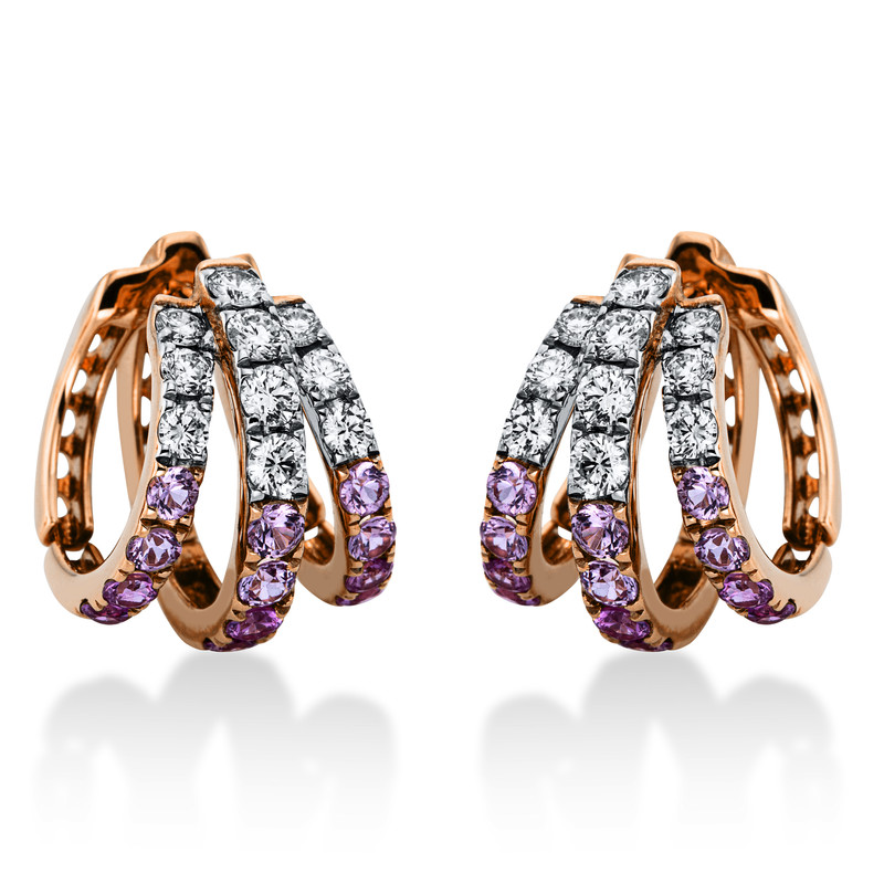 huggies 18 kt RG+WG, 20 diamonds 0,80 ct, G-si, 24 sapphire 1,29 ct pink