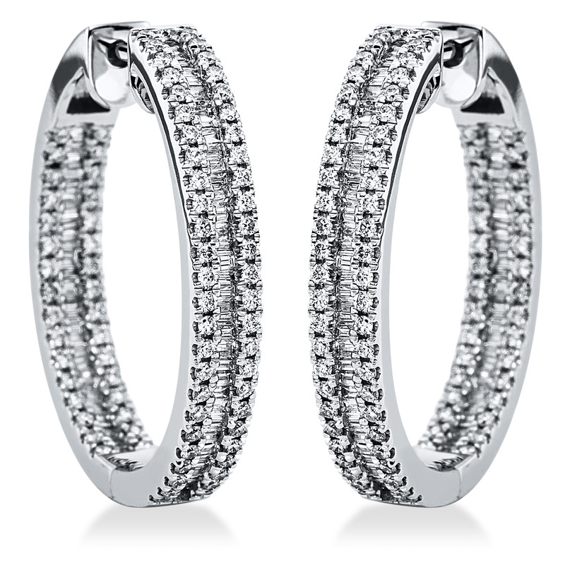 huggies 18 kt WG, 133 baguette 0,50 ct, G-si, 164 diamonds 0,54 ct, G-si, h:22,5 mm, w:20,6 mm, th:3,3 mm