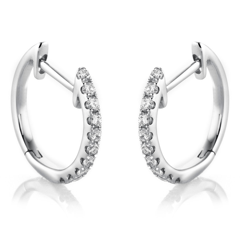 huggies 18 kt WG, 20 diamonds 0,16 ct, G-si, h:11,3 mm, w:11,3 mm, th:1,3 mm