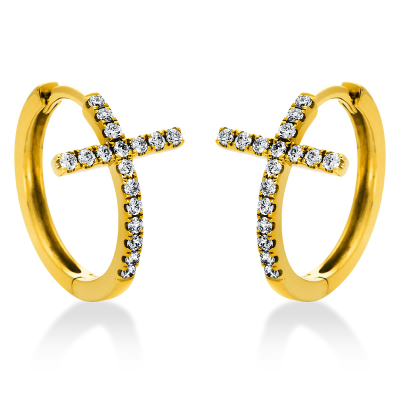 huggies 18 kt YG "cross", 34 diamonds 0,22 ct, G-si