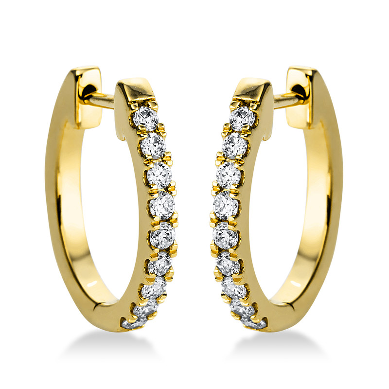huggies 18 kt YG, 18 diamonds 0,25 ct, G-si, h:14,1 mm, w:12,6 mm, th:1,6 mm