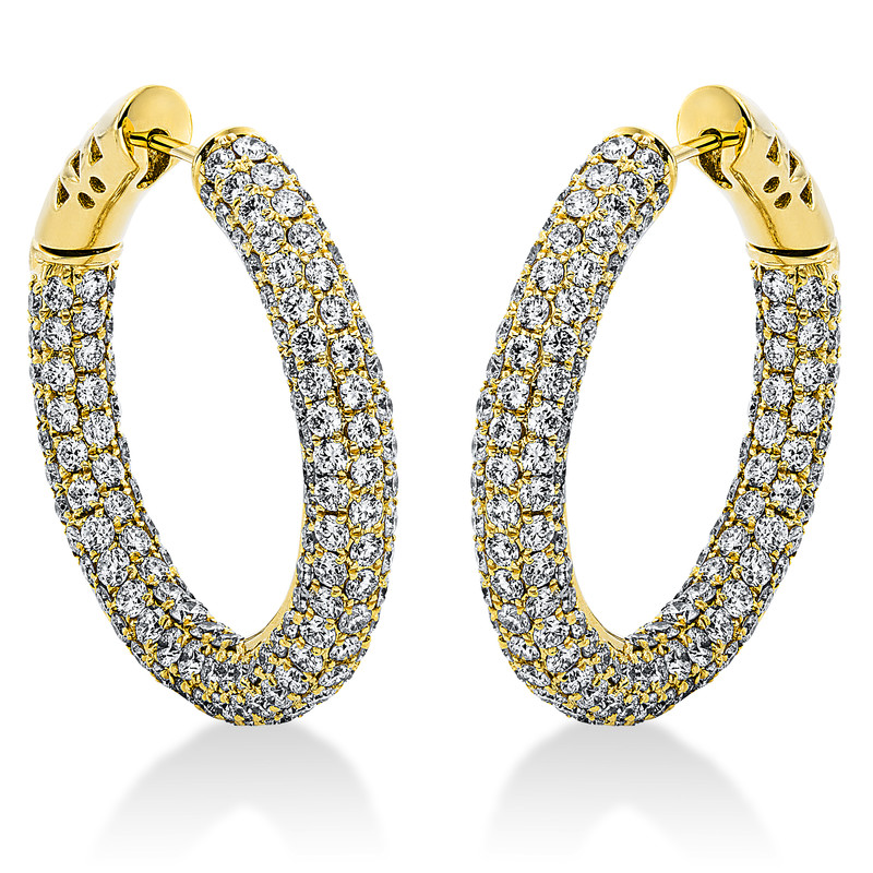 huggies 18 kt YG, 352 diamonds 6,35 ct, G-vsi, h:29,2 mm, w:28,2 mm, th:4,1 mm