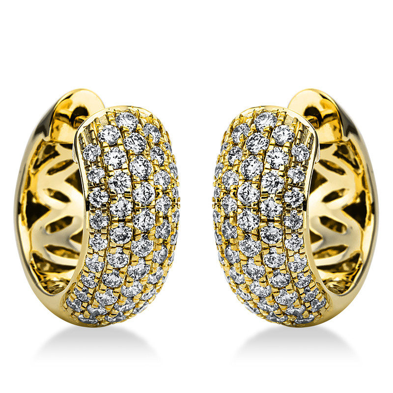 huggies 18 kt YG, 98 diamonds 0,69 ct, G-si, h:12,7 mm, w:13,1 mm, th:5,6 mm