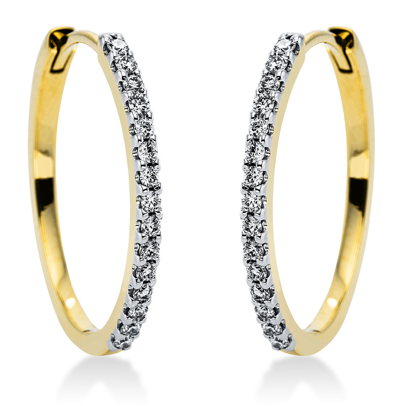huggies 18 kt YG+WG, 30 diamonds 0,32 ct, G-si, h:20,4 mm, w:18,5 mm, th:1,6 mm