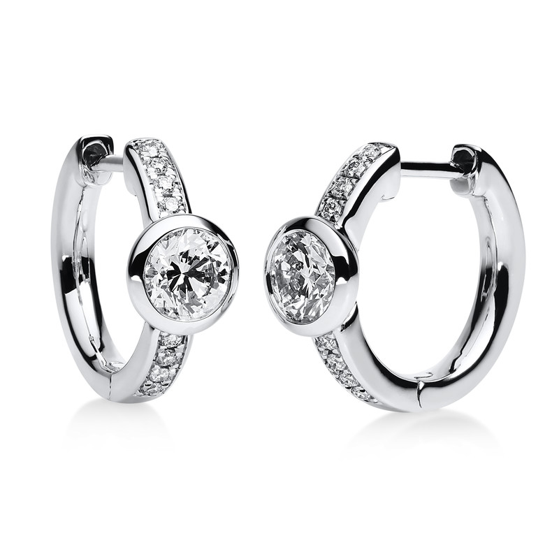 huggies bezel 14 kt WG, 16 diamonds 0,09 ct, G-si, 2 diamonds 0,81 ct, G-si, h:13,0 mm, w:15,5 mm, th:5,7 mm