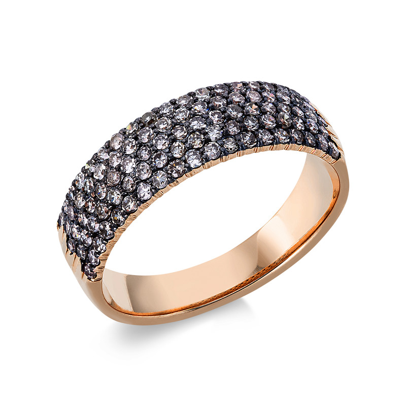 ring 14 kt RG, black rhodium plated, 93 diamonds 0,75 ct, brown, w:5,9 mm, width:54