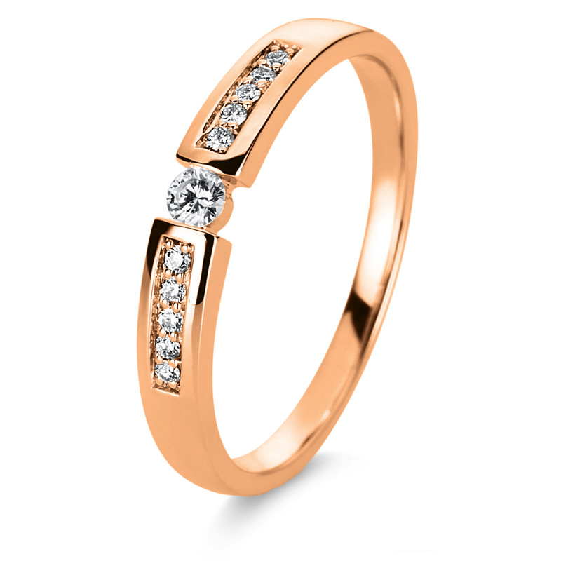 ring 14 kt RG, polished, 11 diamonds 0,13 ct, G-si, w:2,9 mm, width:54