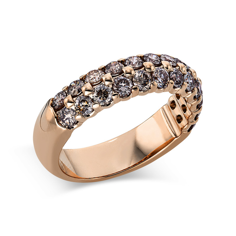 ring 14 kt RG, 24 diamonds 1,50 ct, brown, width:54