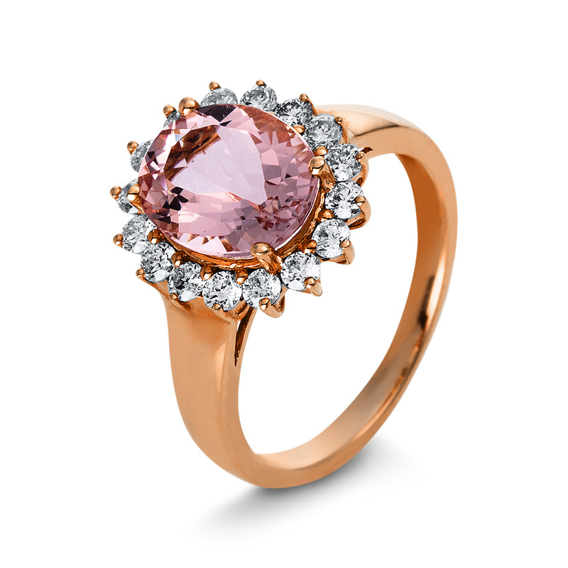 ring 14 kt RG, 16 diamonds 0,56 ct, G-si, 1 morganite 2,53 ct rosé, width:54