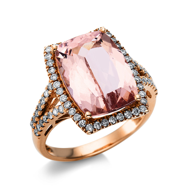 ring 14 kt RG, 66 diamonds 0,46 ct, G-si, 1 morganite 6,51 ct rosé, h:12,8 mm, w:16,6 mm, width:54