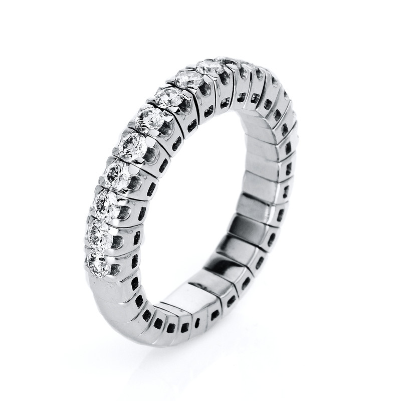 ring 14 kt WG, flex-band, variable, rhod.pla, 15 diamonds 0,71 ct, G-si, width:54