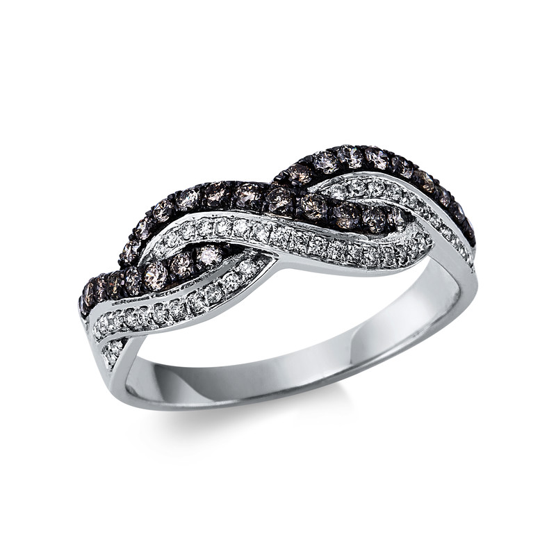 ring 14 kt WG, setting partly black rhodium, 44 diamonds 0,17 ct, G-si, 28 diamonds 0,38 ct, brown, width:56