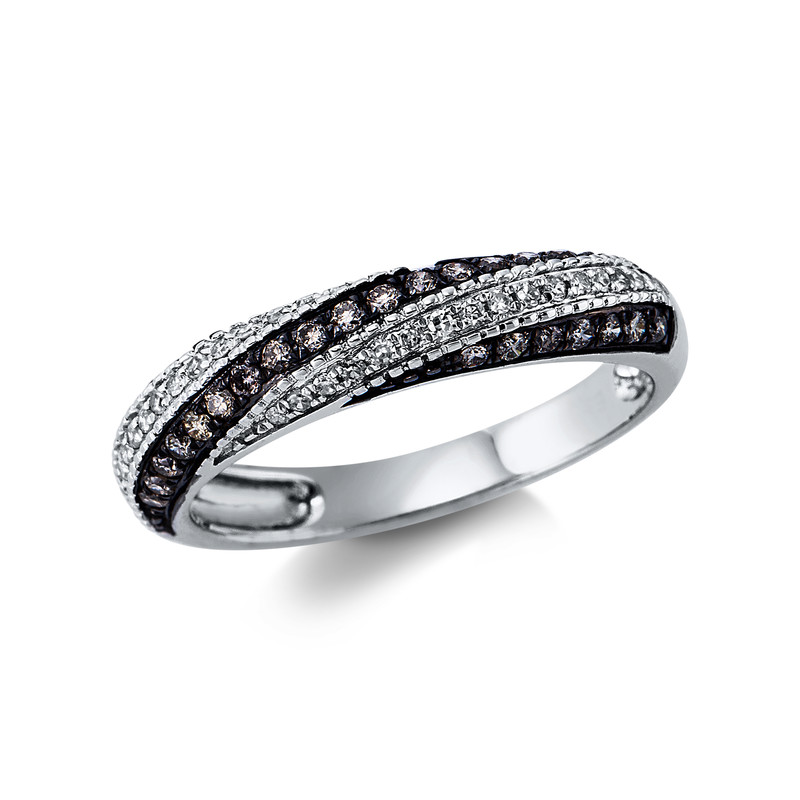 ring 14 kt WG, setting partly black rhodium, 32 diamonds 0,12 ct, G-si, 30 diamonds 0,26 ct, brown, width:54,5