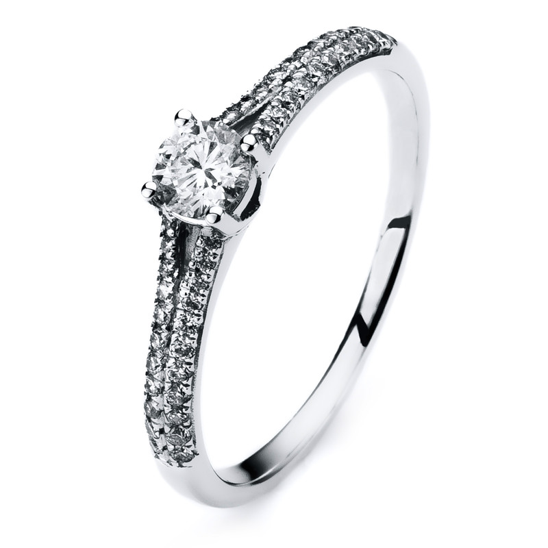 ring 14 kt WG, 44 diamonds 0,17 ct, G-si, 1 diamond 0,24 ct, G-si, w:1,6 mm, width:54