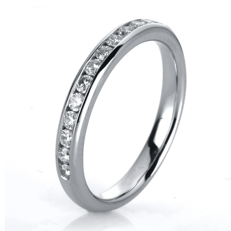 ring 14 kt WG, 13 diamonds 0,34 ct, G-si, w:2,9 mm, width:52