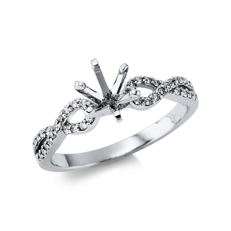 ring 14 kt WG, 38 diamonds 0,14 ct, G-si, mounting for 1x diamond 0,75 ct, width:52,5