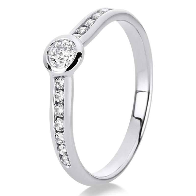 ring 14 kt WG, 14 diamonds 0,19 ct, G-si, 1 diamond 0,15 ct, G-si, w:2,7 mm, width:54