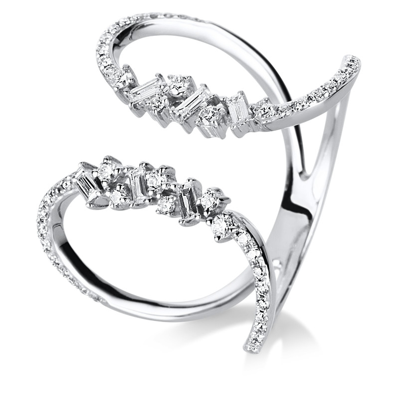 ring 14 kt WG, 6 baguette 0,15 ct, G-si, 53 diamonds 0,29 ct, G-si, width:53