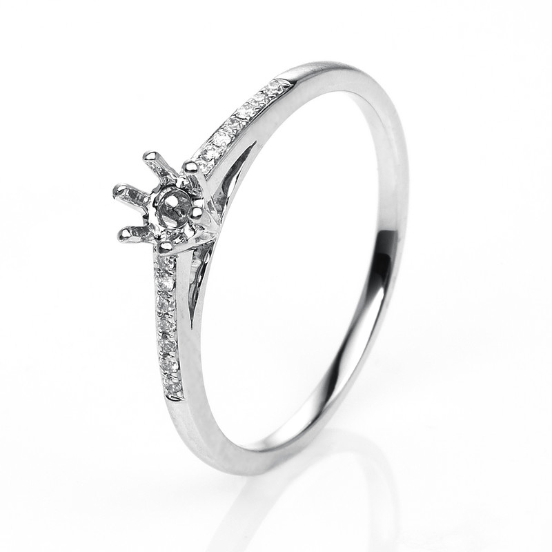 ring 14 kt WG, 14 diamonds 0,06 ct, G-si, mounting for 1x diamond 0,15 ct, width:54