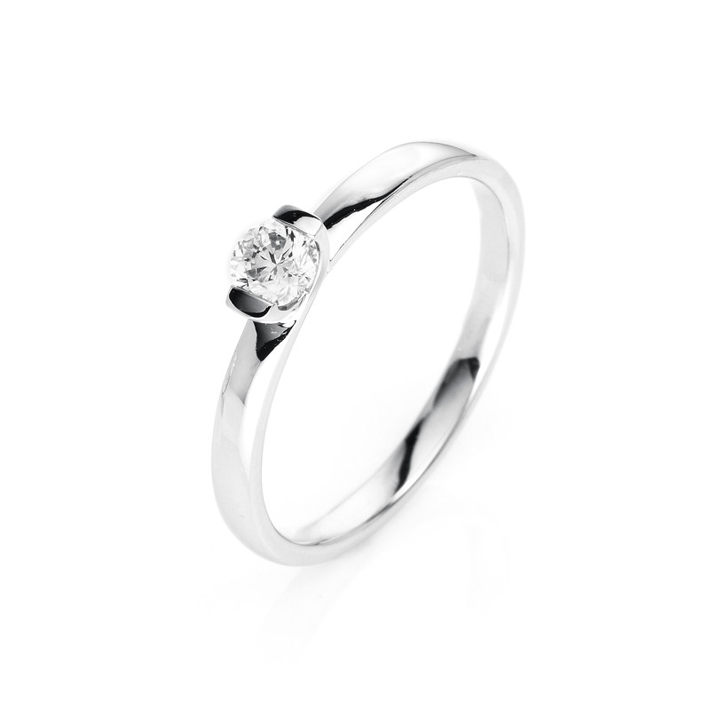 ring 14 kt WG, 1 diamond 0,25 ct, G-si, w:2,4 mm, width:54