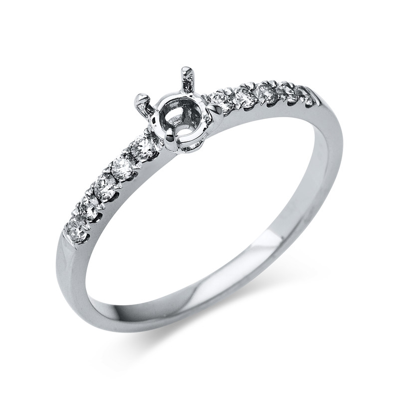 ring 14 kt WG, 10 diamonds 0,19 ct, G-si, mounting for 1x diamond 0,25 ct, width:54