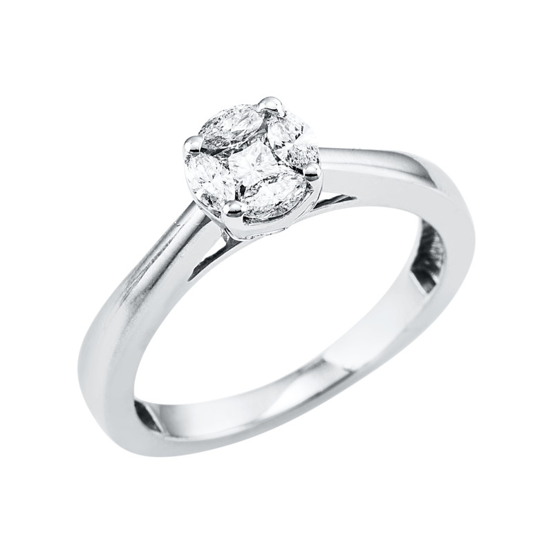 ring 14 kt WG, 1 princess 0,18 ct, H-vsi/si, 4 marquise 0,25 ct, H-vsi/si, width:54