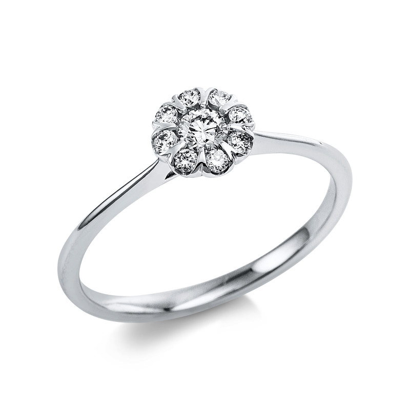 ring 14 kt WG, 1 diamond 0,13 ct, G-si, 8 diamonds 0,11 ct, G-si, width:54