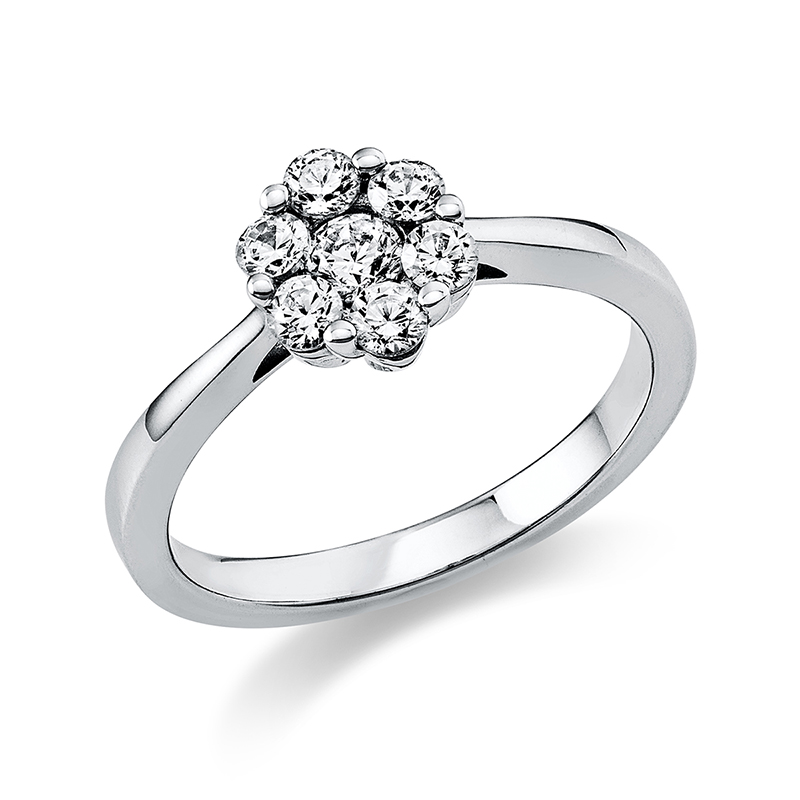 ring 14 kt WG, 1 diamond 0,14 ct, G-si, 6 diamonds 0,38 ct, G-si, w:7,6 mm, Ø:7,6 mm, width:54