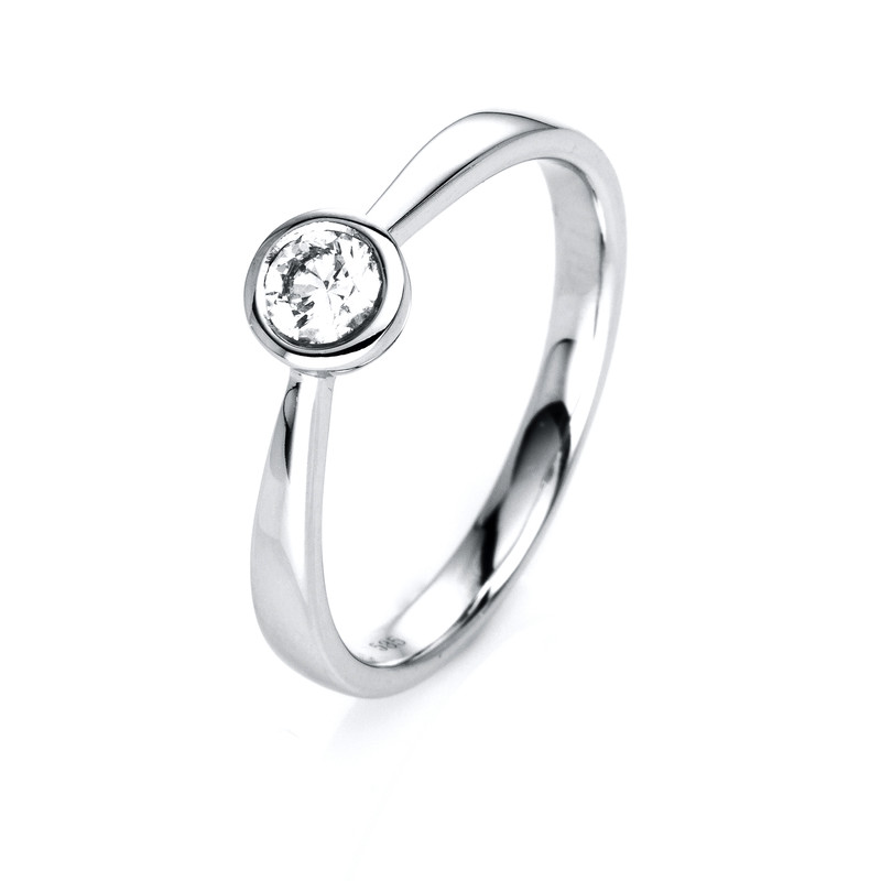 ring 14 kt WG, 1 diamond 0,25 ct, G-si, w:3,4 mm, width:54