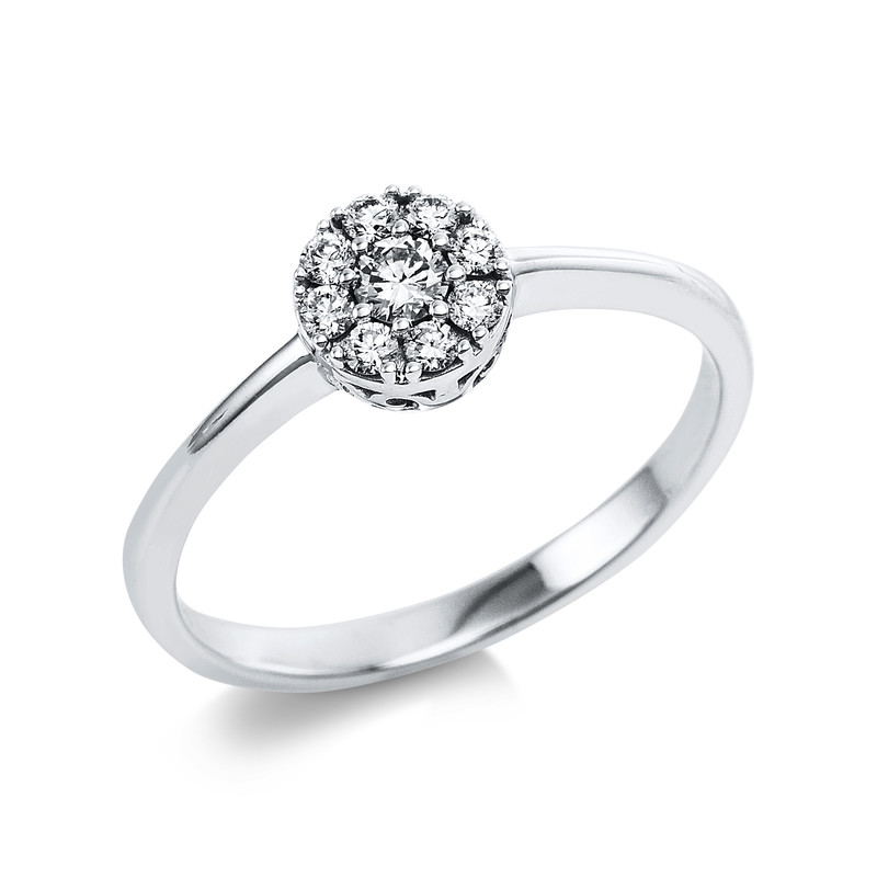ring 14 kt WG, 1 diamond 0,08 ct, G-si, 8 diamonds 0,13 ct, G-si, width:54