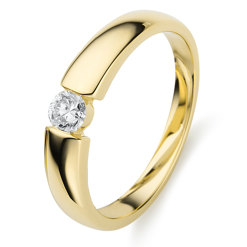 ring 14 kt YG, polished, 1 diamond 0,20 ct, G-si, w:3,9 mm, width:53