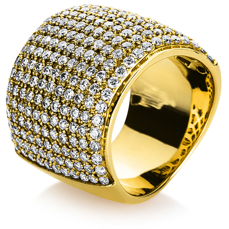 ring 14 kt YG, 220 diamonds 3,17 ct, G/H-si/pi, w:18,7 mm, width:55