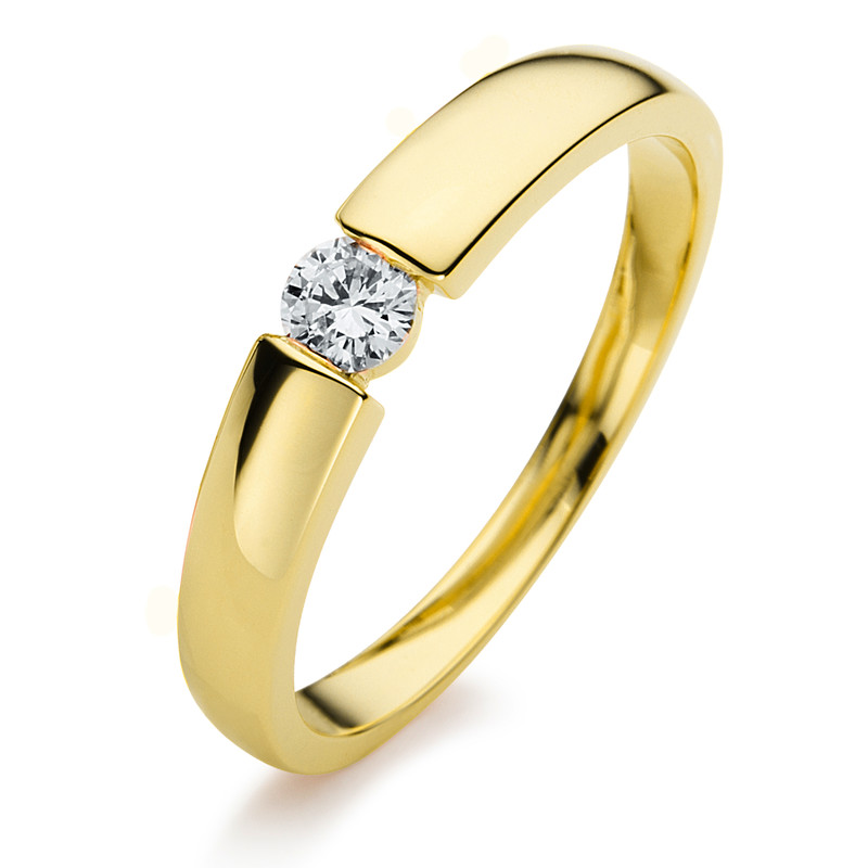 ring 14 kt YG, 1 diamond 0,17 ct, G-si, w:3,4 mm, width:54